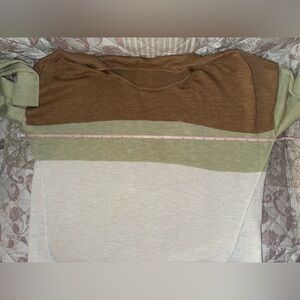 Elevate your wardrobe with this stylish colorblock top. Featuring a blend of brown, green, and cream, this top is perfect for any casual outing. Enjoy comfort and style in one piece.