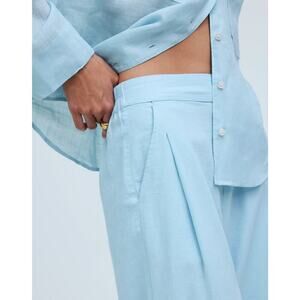 Madewell Pants Petite Pull-On Straight Crop Linen Blend Blue Heron NWT Size 14