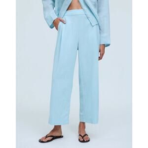 Madewell Pants Petite Pull-On Straight Crop Linen Blend Blue Heron NWT Size 8P