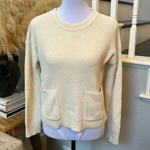 Knitted from our favorite yarn, this crewneck sweater has an easy, boxy fit and a high-low hem made for half-tucking. Maybe the best part? Those cute retro patch pockets.