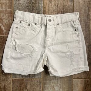 Madewell White 'Patch & Repair' Style High Rise Denim Shorts Size 24. In excellent used condition; no stains, no holes/tears from wear, no flaws.