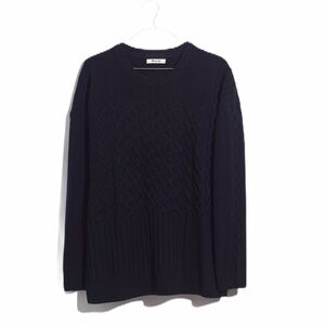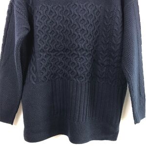 Madewell Patchwork Cable Knit Tunic Sweater Women’s Size M Navy Chunky