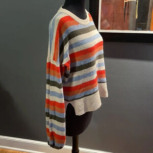 Madewell Payton super soft polyamide/merino wool/alpaca/elastane blend striped cropped crewneck sweater. Sideseam hem slits. Long sleeves with gathered narrow cuffs. Small. Excellent condition. Nonsmoking home.