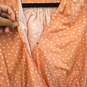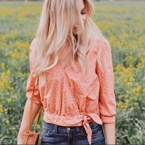 Madewell Peach/Coral Cotton Wrap Top Star Design