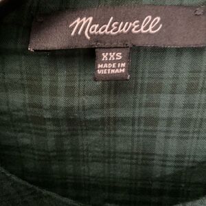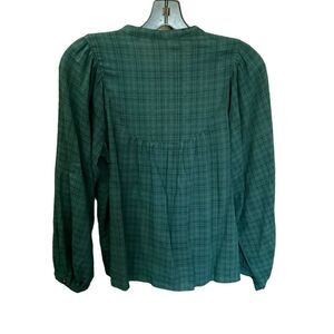 Madewell Peasant Blouse Button Front Dark Green Plaid Balloon Sleeves XXS