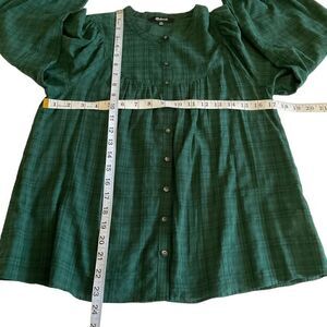 Madewell Blouse Peasant Button Down Front with Round Neck in Green Plaid with Balloon Sleeves and Button Cuffs in Women’s Size XXS Casual Holidays Preppy Academia Peasant