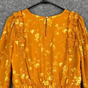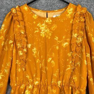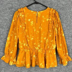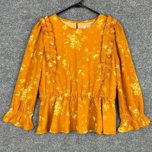 Madewell Peasant Boho Blouse Top Size Small Ruffles Floral Peplum Yellow Orange