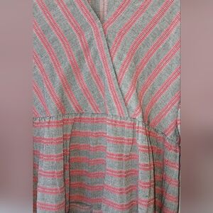 Madewell Peplum Bubble 3/4 Sleeve Crossover Top Size XS Red Gray