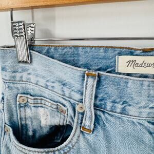 light wash denim, vintage lived-in feel, rigid cotton denim, summer staple jeans, high rise straight leg, effortless everyday style, classic Madewell fit, minimalist wardrobe basics