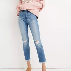 Item: Women's Perfect Vintage Jean in Parnell Wash Distressed Comfort Stretch Frayed Hem Ankle Crop
