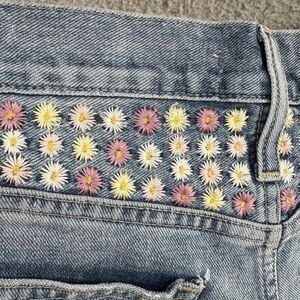 Madewell Perfect Vintage Jean Shorts Embroidered Daisy Size 27 Boho Chic 70s