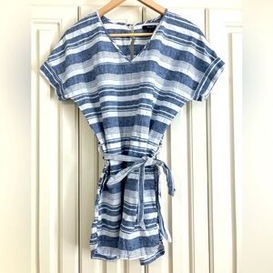 Women’s Madewell Perimeter Linen Stripe V-neck Romper Tie Waist XS