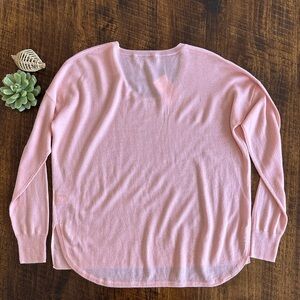 NWT from Nordstrom Rack. There is a small snag on front, shown in last photo. 50% Merino Wool, 50% Acrylic. Lightweight and perfect for spring. Scoop neck. A little longer in back and slits on sides.