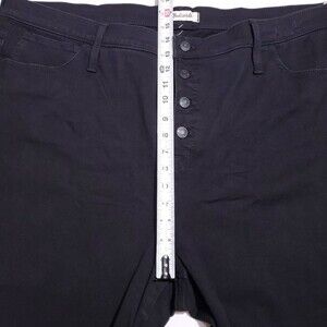 Women's Madewell Petite 10" High Rise Roadtripper Black Jeggings or skinny jeans, distressed with busted knee. Button front or button fly. Style number K9922. New with tags. Size 37P, equal to plus size 24 (petite), please see included Madewell size chart for details. Real measurements shown in photos with pants laid flat: