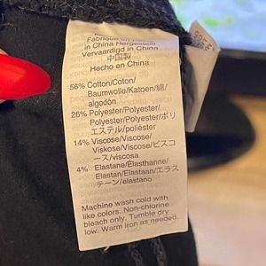 -57% cotton/25% poly/14% rayon/4% elastane denim.