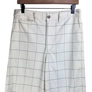 Madewell Petite Emmett Cream Windowpane Crop Wide-Leg High Rise Pants Pockets