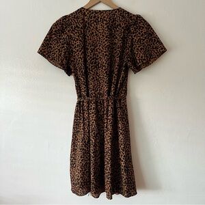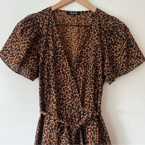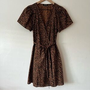 Crafted from lightweight cotton in a subtle leopard print, this flutter-sleeve wrap dress features an adjustable tie at the waist. It's effortlessly stylish and in excellent condition.