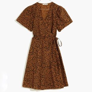 Madewell Petite Flutter-Sleeve Wrap Mini Dress in Painted Leopard