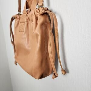 Madewell Crossbody, Tan Leather Bag, Timber Beam, New with Tags, Sustainable Leather, Drawstring Bag, Bucket Bag, Two-Way Bag, Adjustable Strap, Top Handle Bag, Gold Hardware, Everyday Bag, Cognac Leather, Minimalist Handbag, Italian Leather, Designer Crossbody, Shoulder Bag, Unstructured Bag.