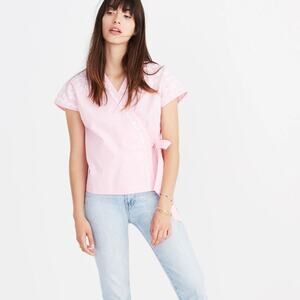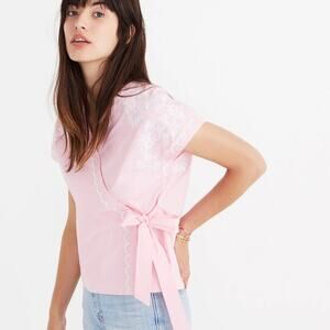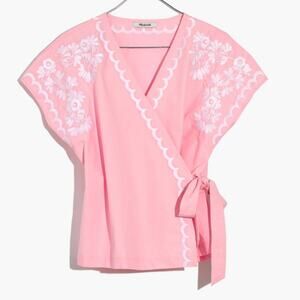 Madewell Pink Embroidered Side-Tie Wrap Top Size XS