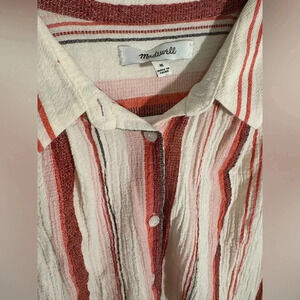 Madewell Pink Red Valentine Albee Striped Central Button Down Short Sleeve Shirt