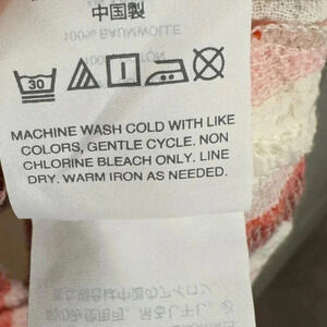 MACHINE WASH COLD WITH LIKE COLORS, GENTLE CYCLE. NON CHLORINE BLEACH ONLY, LINE DRY. WARM IRON AS NEEDED.