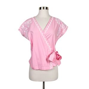 Madewell Pink White Embroidered Side Tie Wrap Top Boho Top Blouse Size XS