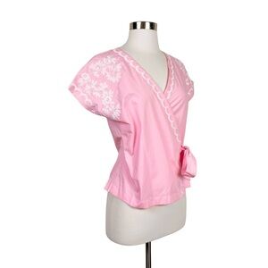 Madewell Pink White Embroidered Side Tie Wrap Top Boho Top Blouse