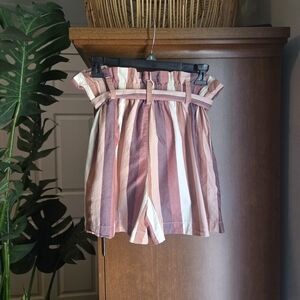 Madewell Pink and Cream High Waist Paperbag Shorts