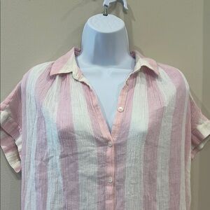 This stylish pink and white striped top is perfect for any casual outing. Its soft fabric ensures comfort throughout the day. A must-have addition to your wardrobe.