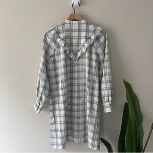 Madewell Plaid Cottagecore Gray and White Button Down Long Sleeve Dress Light S
