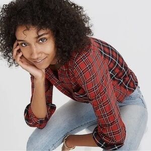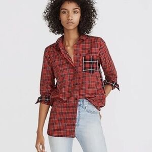 Madewell ex boyfriend plaid patchwork oversized button down shirt. Holiday rustic, cottagecore, Evermore, preppy. Size M. Excellent condition. (V)