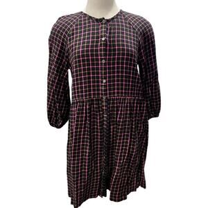 Madewell Plaid Flannel Raglan Button Front Shirtdress Size 4