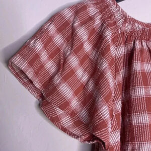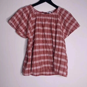 Madewell Plaid Gauze Flutter-Sleeve Top Size Small
