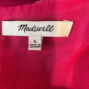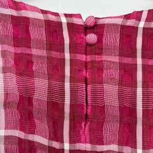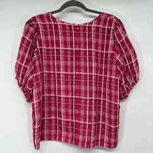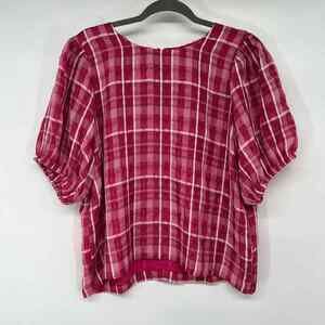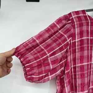 Madewell Plaid Puff-Sleeve Top Women's Sz L Bold Pink Textural Sheer Style MC052