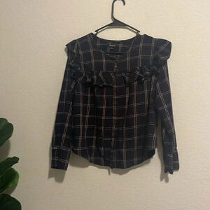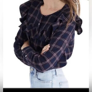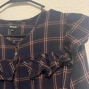 Madewell Plaid Ruffle-Yoke Long Sleeve button up Blouse Small