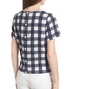 Navy Plaid Short Sleeve Top