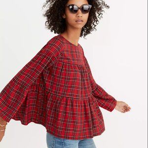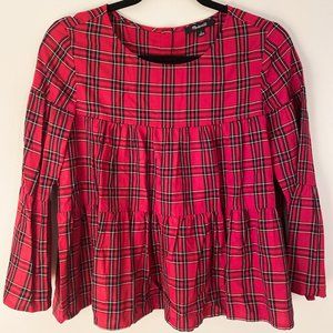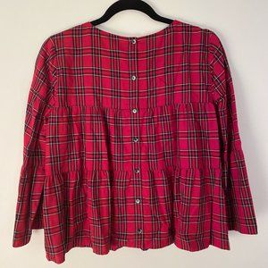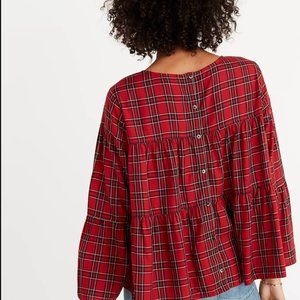 Madewell Plaid Tiered Button-Back Top