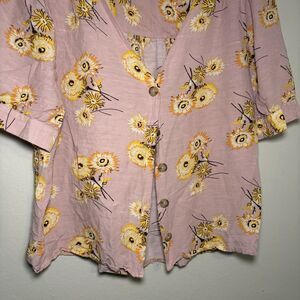 Madewell Plaza Dandelion Button Front Top Floral Blouse Linen Blend Pink Women M