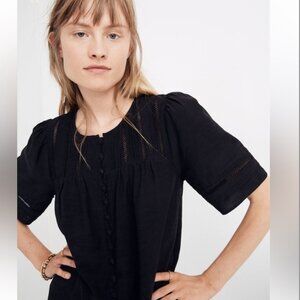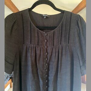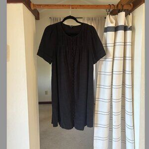 Madewell Pleated Button-Front Black Shift Dress Medium