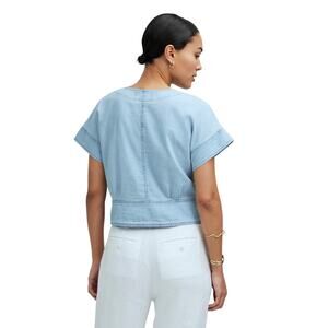 Elevate your casual wardrobe with this Madewell pleated short-sleeve top in a soft denim Doral Wash. Crafted from 100% cotton, this versatile piece combines laid-back ease with polished details. Featuring flattering pleating at the waist, a button-front closure, and a cropped length, it’s perfect for pairing with high-rise trousers, skirts, or your favorite jeans. A must-have summer-to-fall transition piece that balances comfort and timeless Madewell style.