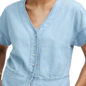 Madewell Pleated Short-Sleeve Denim Top XXL Blue Doral Wash NWT