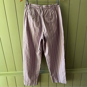 The Pleated Tapered-Leg Pants in Signature Poplin by Madewell in Antique Purple. Made of our airy signature cotton poplin, these striped tapered-leg pants are pleated with belt loops and double buttons at the waist. Casual and cool, they hook up perfectly with everything from a button-up to a comfy tee. Gently worn with no visible flaws. Measurements in photos. Size 2.