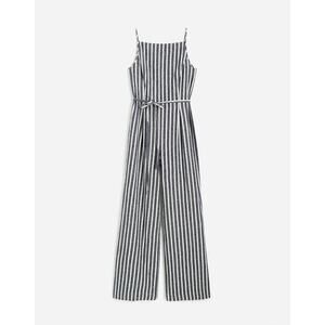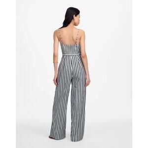 Madewell Pleated Wide-Leg Pinstripe Linen Jumpsuit Navy White Size 4