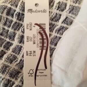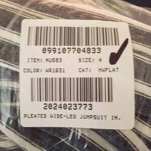 NWT Madewell Pleated Wide-Leg Jumpsuit in lightweight linen-blend fabric. Features navy and white pinstripes, a tailored pleated fit, and a wide-leg cropped silhouette—perfect for both casual and polished looks.
