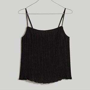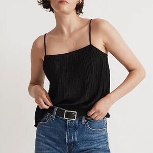 Madewell Plissé Crop Cami Tank in True black size Small NWT NM386