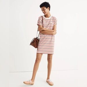 Madewell Pocket Tee Dress in Pablo Stripe Ripe Persimmon NWT