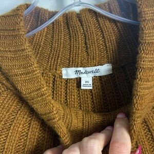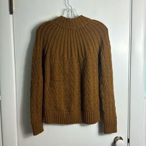 Madewell Pointelle Stitch-Mix Mockneck Sweater Dried Cedar Brown Chunky Knit