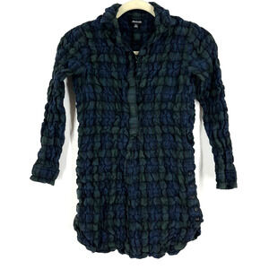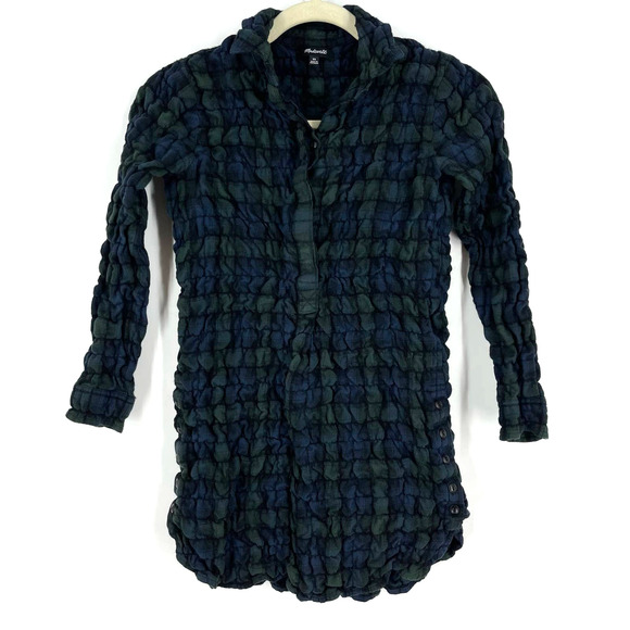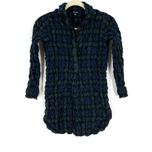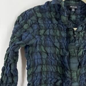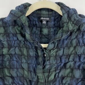 Madewell Popcorn Plaid Flannel Shirt Women's XS Blue Green 3/4 Sleeve