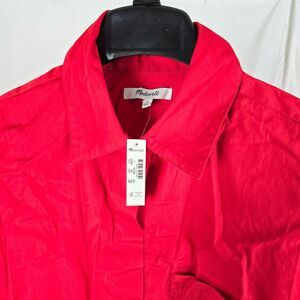 Madewell Poplin Easy Y-Neck Button-Up Shirt Red Size M 100% Cotton Relaxed Fit